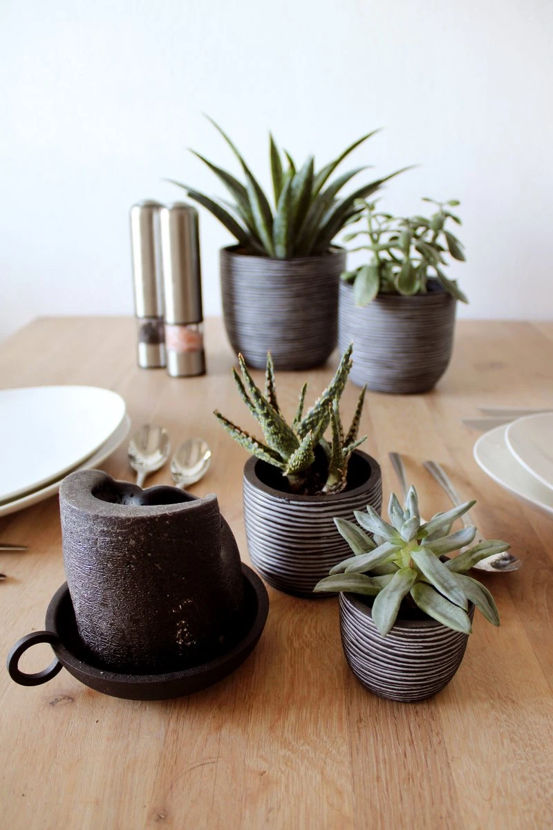 Deze set bevat 4 antracietkleurige potten uit onze all time favourite Nature Rib collectie. Deze set heeft een bijzondere uitstraling dankzij de geribbelde structuur. De textuur van de Rib is geïnspireerd op vlechtwerk met zijn elegante lijnen, waardoor een ritmisch gevoel ontstaat. De antracietkleur combineert natuurlijk en modern zodat deze potten in elk interieur passen.