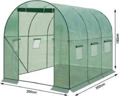 - Grote ruimte: Met afmetingen van 300x200x190 cm (DxBxH) biedt de grote kas een oppervlakte van 6 m2 voor uw planten. Door de royale hoogte kunt u grote planten of hangmanden wijnstokken enz. om uw plantgebied vrij te plaatsen en ontwerpen