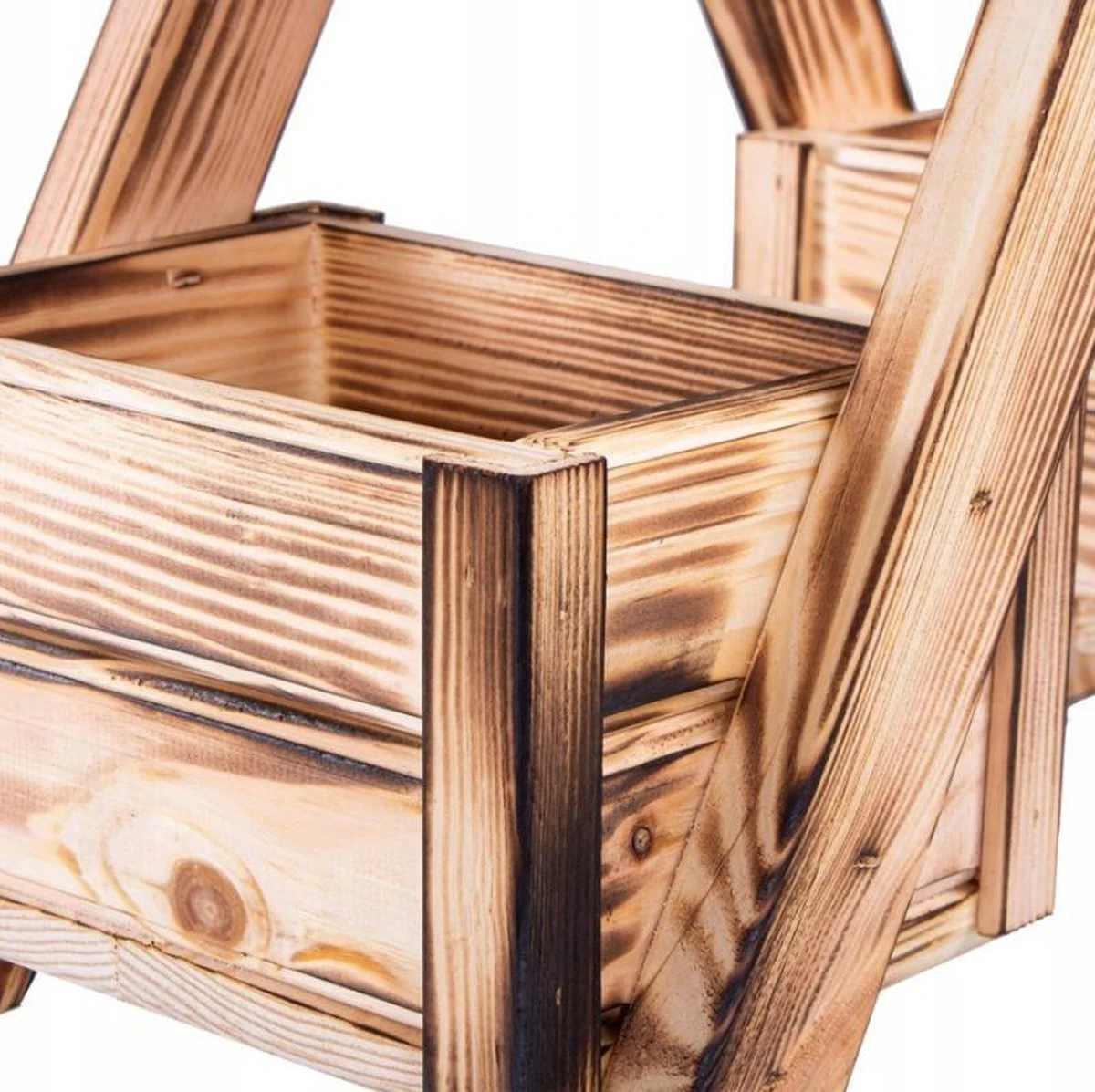 De houten bloembak van het merk Springos is gemaakt in europa . Het geheim van zijn uniciteit ligt in de speciale methode van houtverbranding , die de originele stijl van het product creëert. Het bloembed heeft 3 houten potten waar je verschillende planten in kunt zetten. Dit type decoratie zal perfect zijn als decoratie voor een terras , balkon of gewoon een tuin .