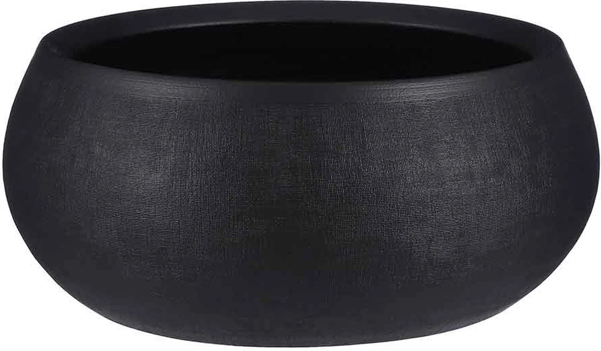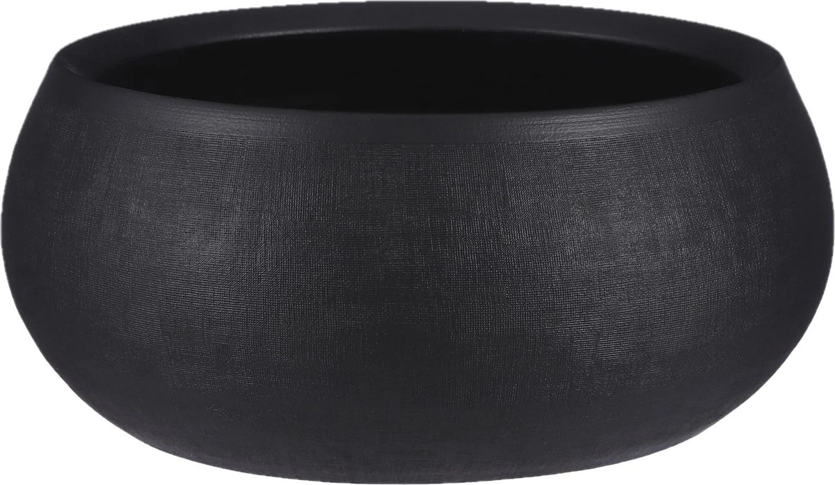Bloempot schaal in de kleur mat zwart gemaakt van keramiek voor een kamerplant – H14 x D34 cm. Deze ronde bloempot uit de Boule serie met mooie afwerking is een bloempot/plantenpot basic voor in elke huiskamer. Gemaakt van terracotta/keramiek. Binnen gebruik. Diameter: 34 cm. Hoogte: 14 cm.