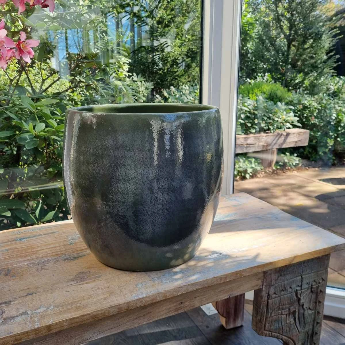 - De pot heeft natuurlijke kleurnuances en een glanzende finish