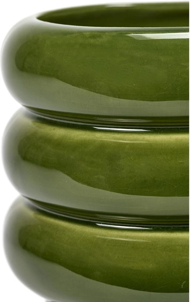 Een speciaal voor Serax ontworpen moderne bloempot/ sierpot. De kleur is groen. De bloempot is zowel voor wat betreft vormgeving als kleur gebruik uniek. De pot heeft een exclusieve en stoer voorkomen, zonder hierbij zijn speelse uitstraling te verliezen. De combinatie van eigenschappen geeft de bloempot een extra dimensie en beleving. Uitstekend toepasbaar in meerdere interieur stijlen. Product is uitstekend te gebruiken als sierpot voor kamerplanten.