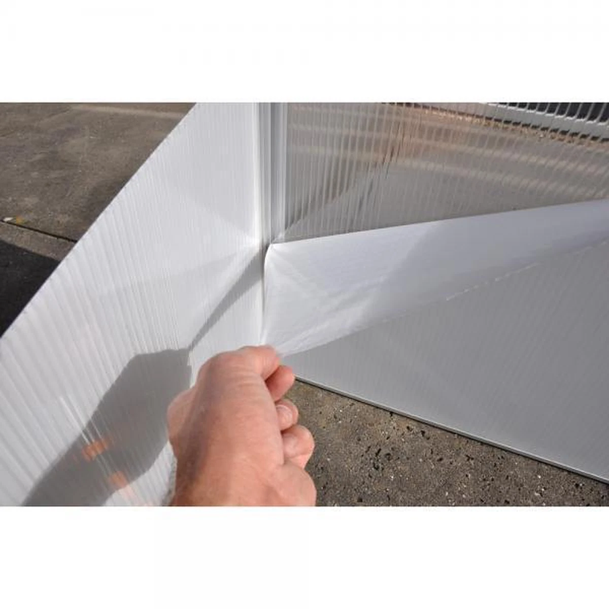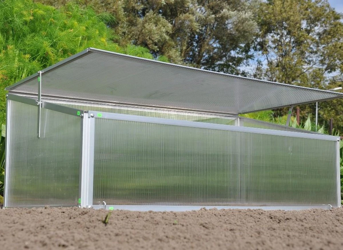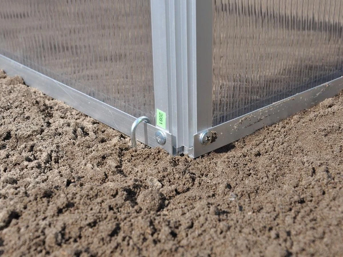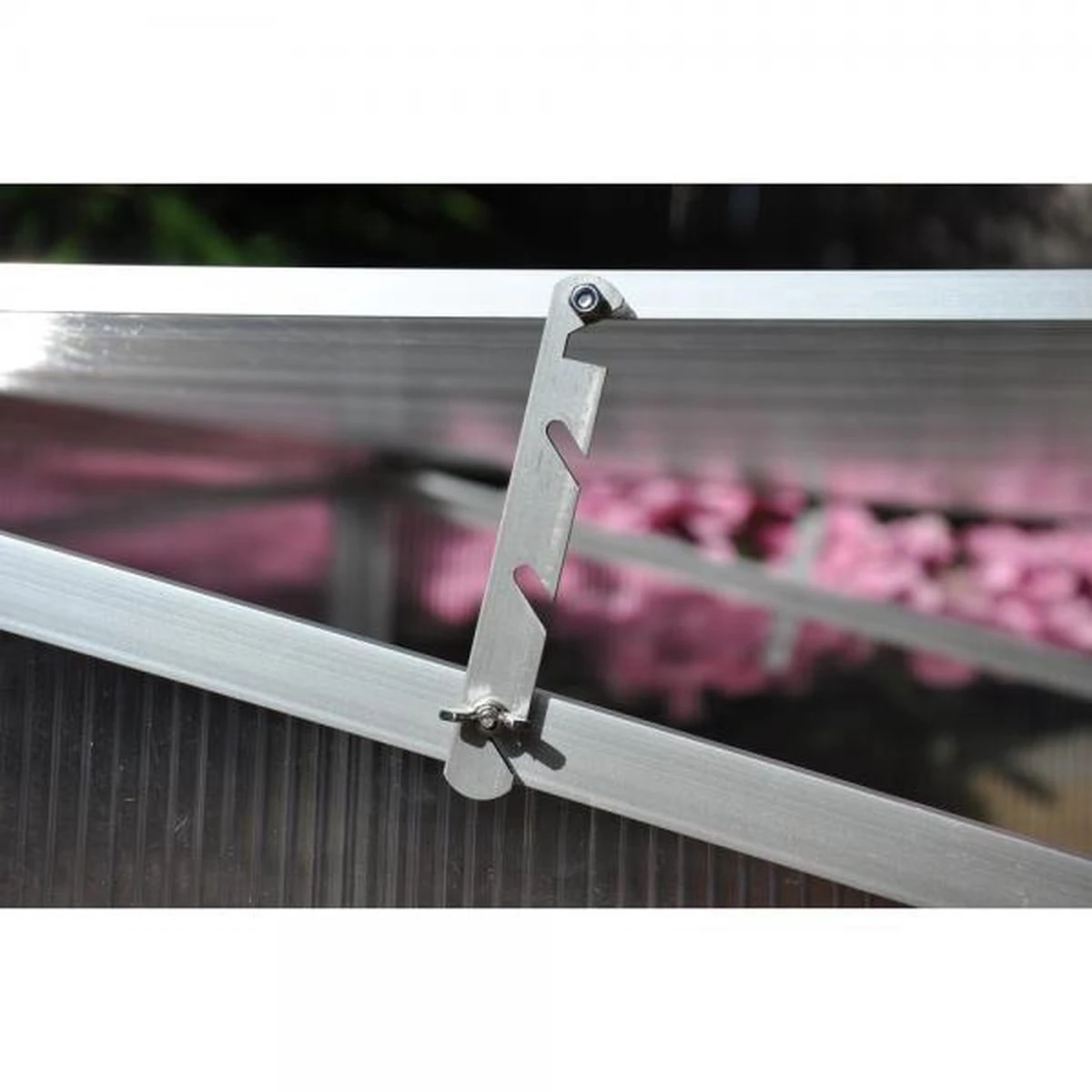 De klep kan met behulp van een uitzetter in vier standen windvast worden geborgd. Voor de verankering van de broeikas worden vier stalen grondpennen mee geleverd met een lengte van 25 cm.